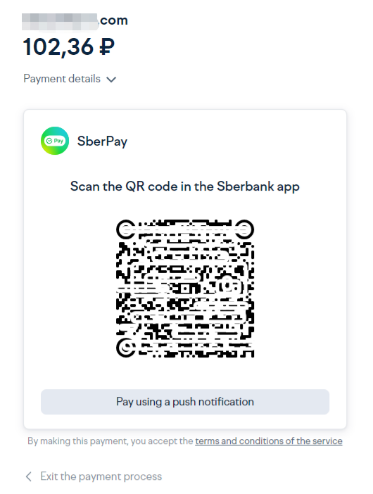 线上支付选择SberPay作为付款方式。 使用SberBank Online应用程序中的扫描仪扫描QR码或使用电话号码付款。 在SberBank在线应用程序中确认付款。 9 i4 w4 i8 ~2 k: B% ^6 s